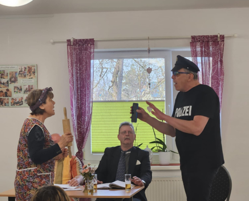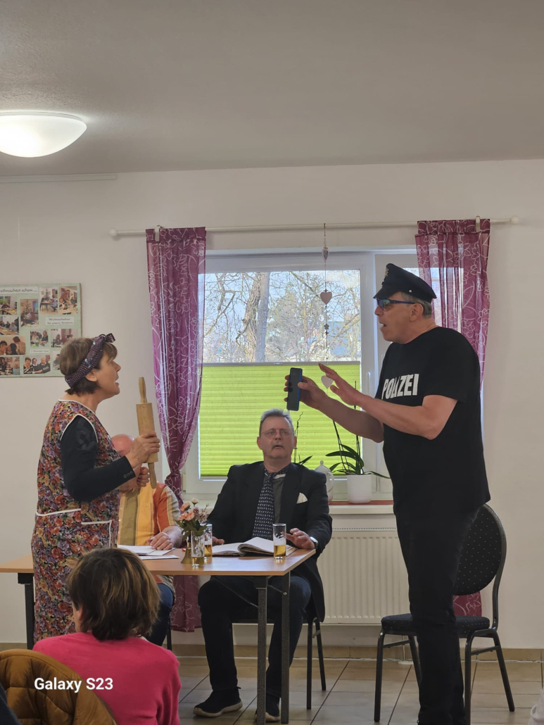 Um 16:00 Uhr öffnete sich im Gemeindehaus der Vorhang für eine wahrhaft wunderbare Theatervorstellung. Von der ersten Minute an war spürbar, mit wie viel Herzblut, Leidenschaft und Engagement die Theatergruppe „Die Waldemars“ auf der Bühne stand.